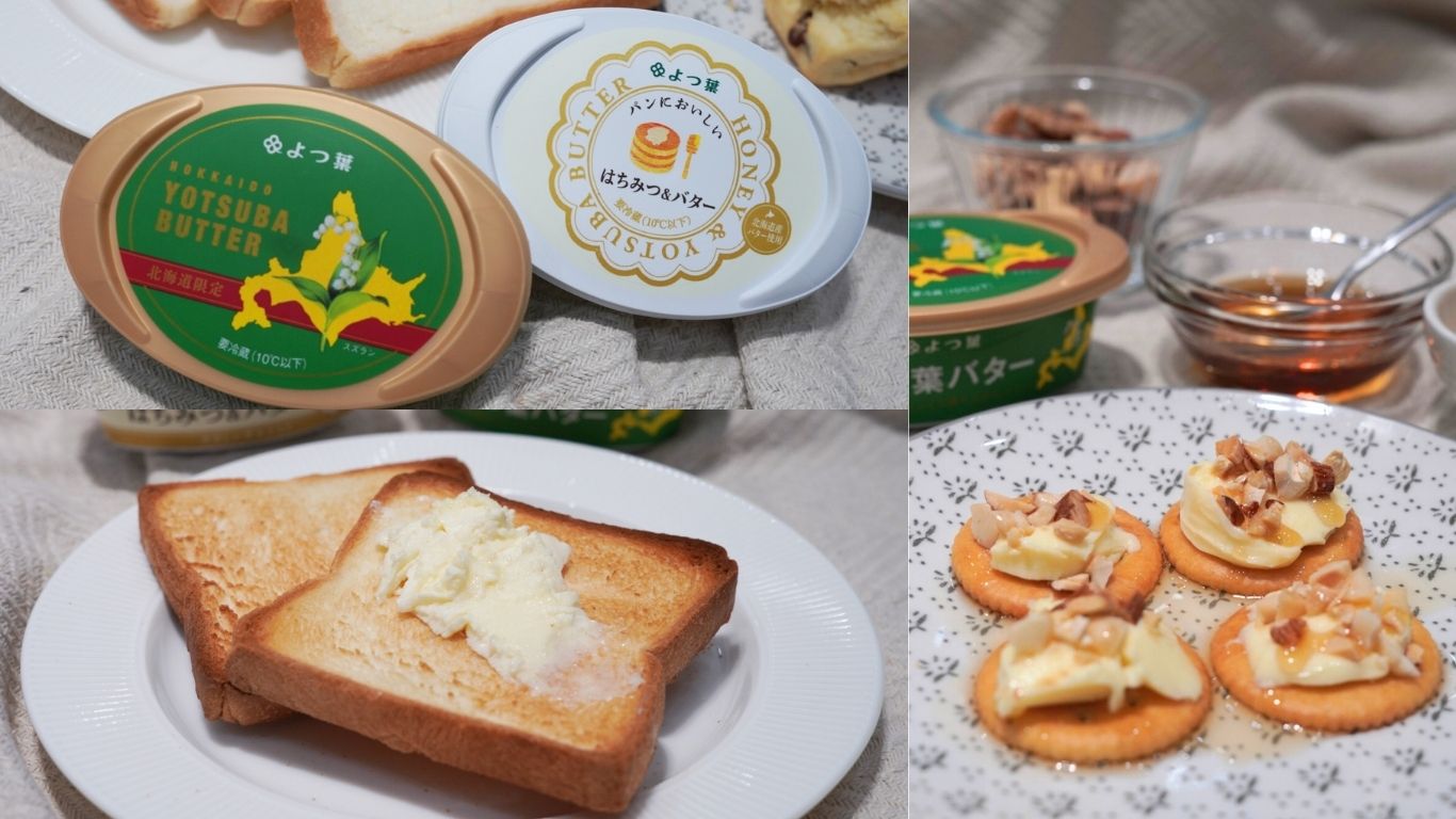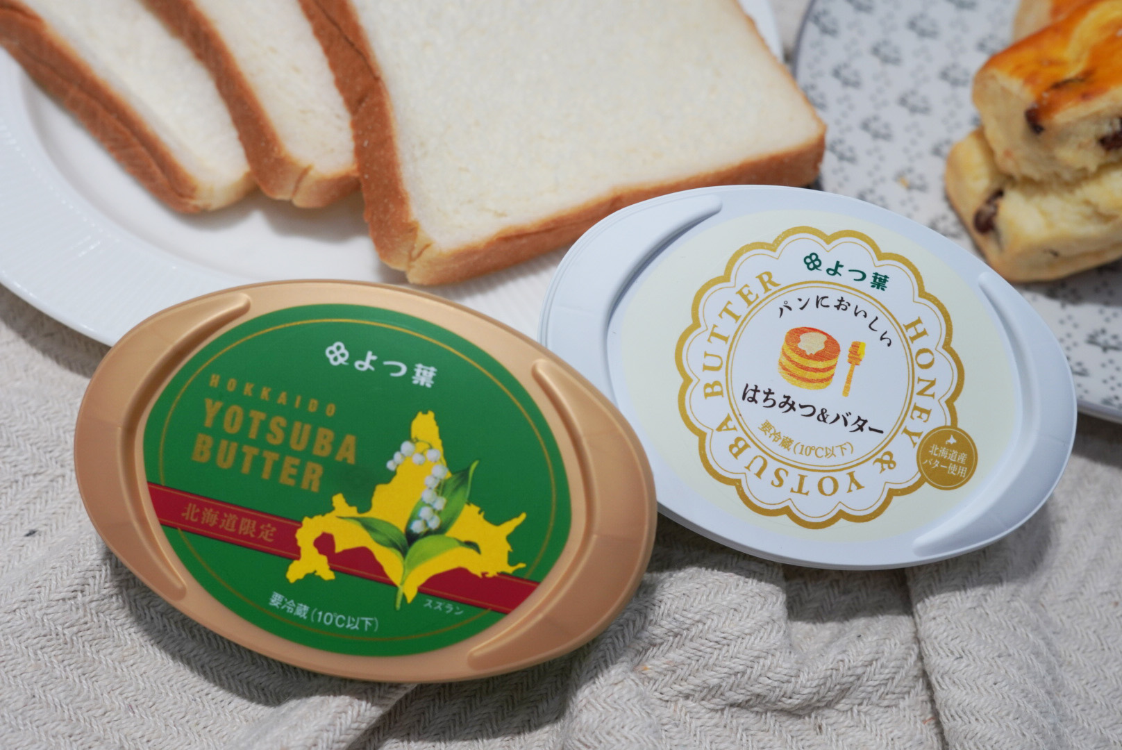 淺綠色包裝的「四葉北海道奶油(加鹽款)」:入口瞬間宛如置身日本!小容量且附蓋子的包裝,讓食用及保存都更加方便;細緻滑順的質地,不需要退冰即可使用。