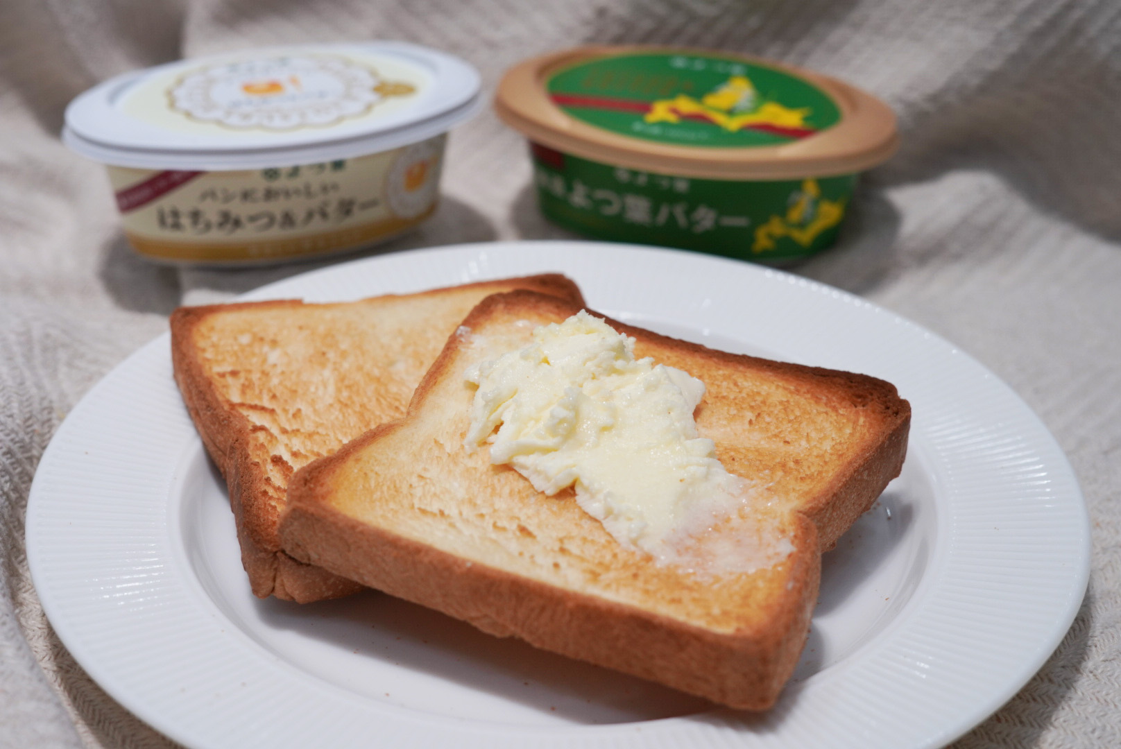 白色包裝的「四葉蜂蜜&奶油」:以乳香濃郁的有鹽奶油為基底,巧妙融合清爽的橘子蜜,帶來微鹹帶甜的絕佳平衡,輕輕一抹,即可讓吐司的美味更加鮮明。