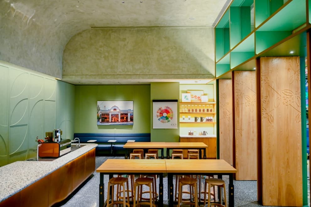 沿著Gallery Wall,顧客可逐步走訪多元創意空間,體驗各異的吧檯設計,並欣賞來自國際知名藝術家,以自然為靈感創作的藝術作品,讓咖啡與藝術共融於日常。門市亦實踐品牌對永續的承諾,廣泛運用創新工法、模組化吧檯設計、再生與回收建材,以及在地工藝與材料,減少環境衝擊,強化與土地文化的連結。