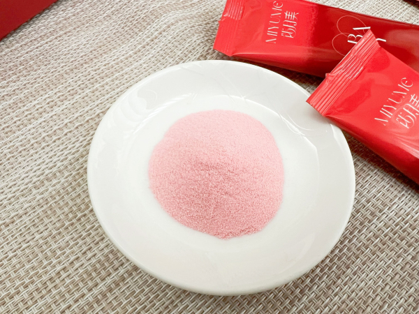 膠原粉在口中融化時會有微微的溫熱感,這是正常的!滿滿嚥下感覺很像在吃草莓味的棉花糖耶~因為份量實在太有誠意了,小編會喝一些水輔助。