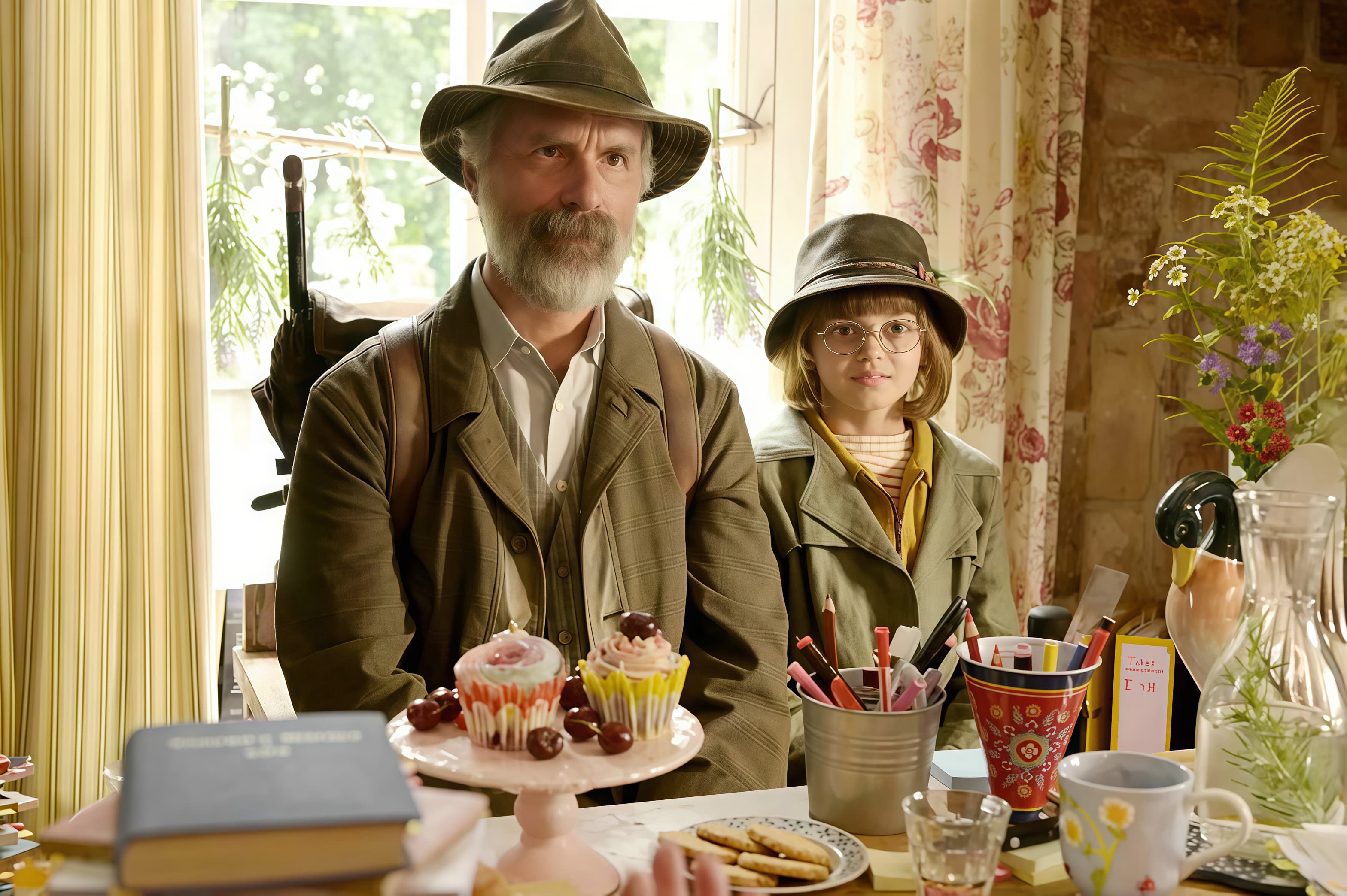 然後某天卡爾在送書的行程中,遇到了9歲的莎莎(#尤娜班尼特),一位個性非常熱情、主動、甚至有點過動的眼鏡女孩,很可愛但有點聒噪😅但卡爾身邊就是缺少一位這樣的角色來豐富他的人生。