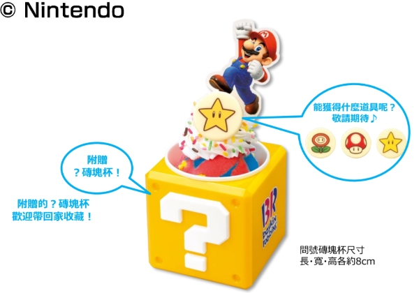在超級瑪利歐系列遊戲中,大家都非常熟悉的?磚塊,竟然變成聖代了!不知道裡面會出現什麼道具呢?敬請期待!